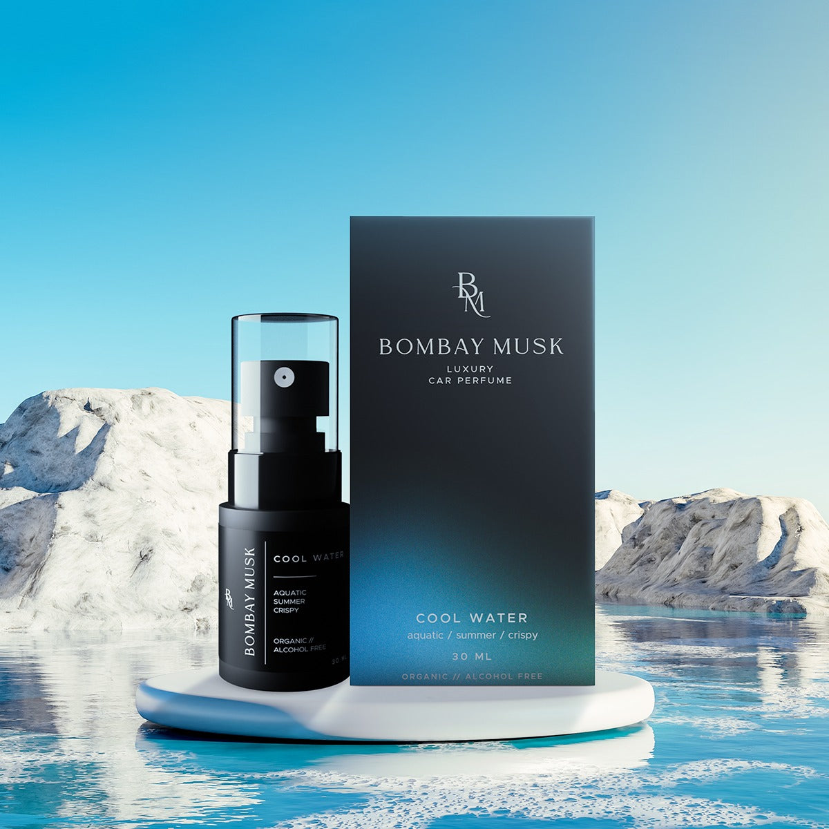 At Bombay Musk, we’ve reimagined this classic for your driving pleasure. Our Cool Water fragrance opens with crisp mint and sea spray, followed by calming lavender and jasmine. Experience the essence of a cool, invigorating ocean breeze on every drive!